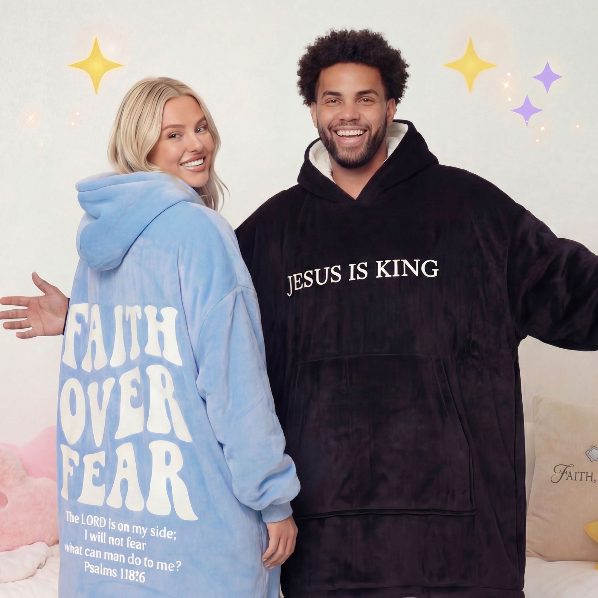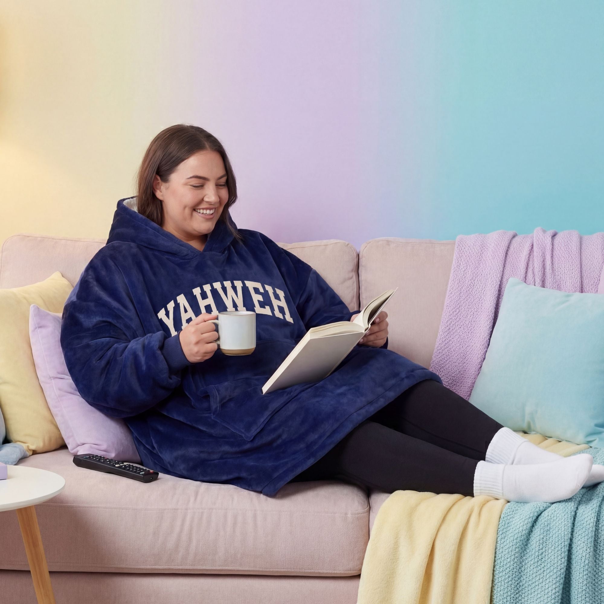 Quiet mornings, peaceful nights, time with family, and moments of rest—Holy Comfort is made to be lived in. Each blanket hoodie is oversized, incredibly soft, and designed to surround you with warmth while gently reminding you of God’s love. Perfect for slowing down, feeling safe, and resting in His presence.